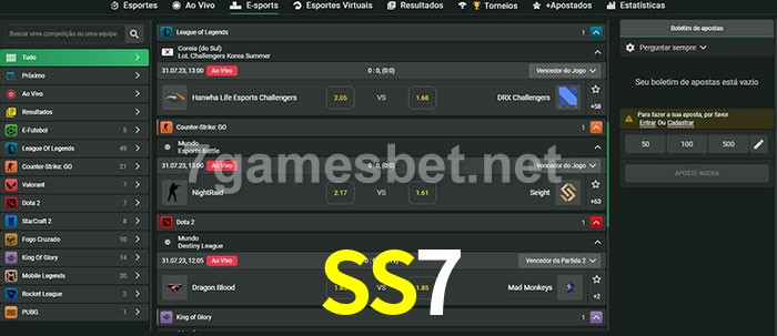 O SS7 oferece uma grande seleção de opções de apostas em e-sports com probabilidades competitivas